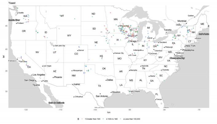 Matching global positioning system (GPS) coordinates to feed samples submitted to Rock River Labs via their FeedScan app helps us visualize where spoilage yeast contaminations are occurring relative to their geographic location.